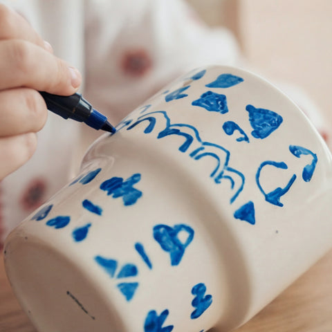 W komplecie znajdziesz biały porcelanowy kubek oraz 5 wysokiej jakości mazaków marki Edding, które pozwolą Ci stworzyć niepowtarzalny wzór.