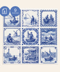 Ilustracje inspirowane są klasyczną estetyką holenderskiej ceramiki Delft, znanej z charakterystycznych niebiesko-białych dekoracji, subtelnych ornamentów i scen inspirowanych naturą oraz sztuką ludową. Dzięki temu zestawowi możesz stworzyć własne dekoracyjne kafle w tradycyjnym stylu lub wykorzystać wzory jako inspirację do własnych projektów ceramicznych.