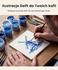 Ilustracje inspirowane są klasyczną estetyką holenderskiej ceramiki Delft, znanej z charakterystycznych niebiesko-białych dekoracji, subtelnych ornamentów i scen inspirowanych naturą oraz sztuką ludową. Dzięki temu zestawowi możesz stworzyć własne dekoracyjne kafle w tradycyjnym stylu lub wykorzystać wzory jako inspirację do własnych projektów ceramicznych.