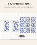 Plik cyfrowy zawiera 9 ilustracji przygotowanych specjalnie w formacie dopasowanym do standardowych kafli 13 × 13 cm, co znacząco ułatwia proces pracy.
