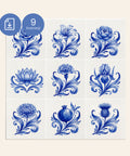 Jeśli tworzysz własne kafle ceramiczne lub interesujesz się dekorowaniem ceramiki, ten zestaw ilustracji w stylu Delft będzie doskonałym materiałem do pracy. Otrzymujesz 9 starannie przygotowanych wzorów w pliku PDF, które możesz łatwo pobrać, wydrukować i wykorzystać do transferu na kafle ceramiczne.